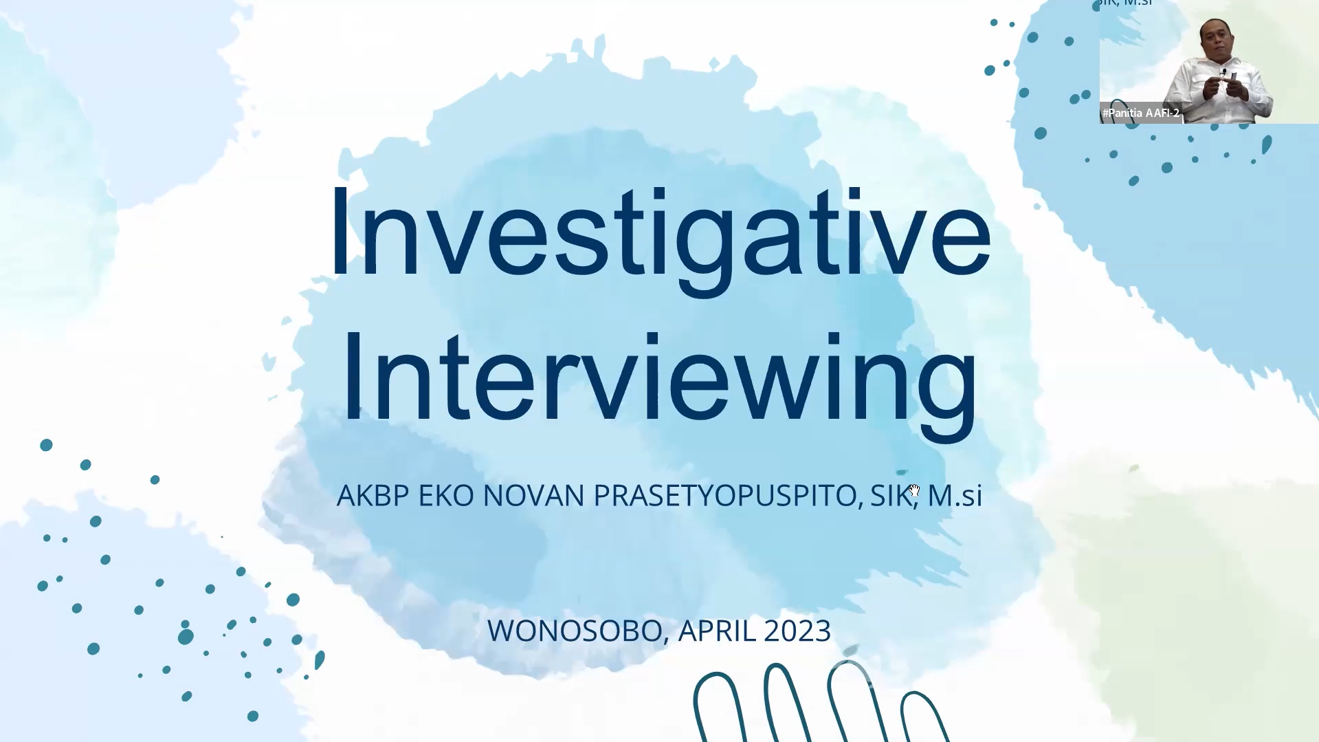 Berdasarkan fakta tersebut, Asosiasi Auditor Forensik Indonesia (AAFI WANDOAK) menggelar webinar bertajuk Investigative Interviewing I yang menghadirkan Bapak AKBP Eko Novan Prasetyopuspito, S.I.K, M.Si. (Kepala Kepolisian Resort Wonosobo) sebagai Narasumber dan Ibu Yezie Dwi Gumay Putri, S.Psi., M.Psi., CMTNLP (Asesor Assosiate PLN) selaku Moderator.