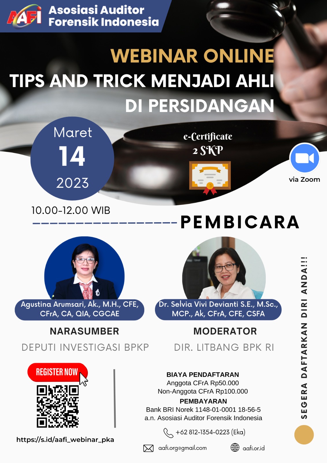 Asosiasi Forensik Auditor Indonesia (AAFI WANDOAK) mengundang Bapak/Ibu dalam Webinar Online dengan Tema "TIPS AND TRICKS MENJADI AHLI DI PERSIDANGAN"